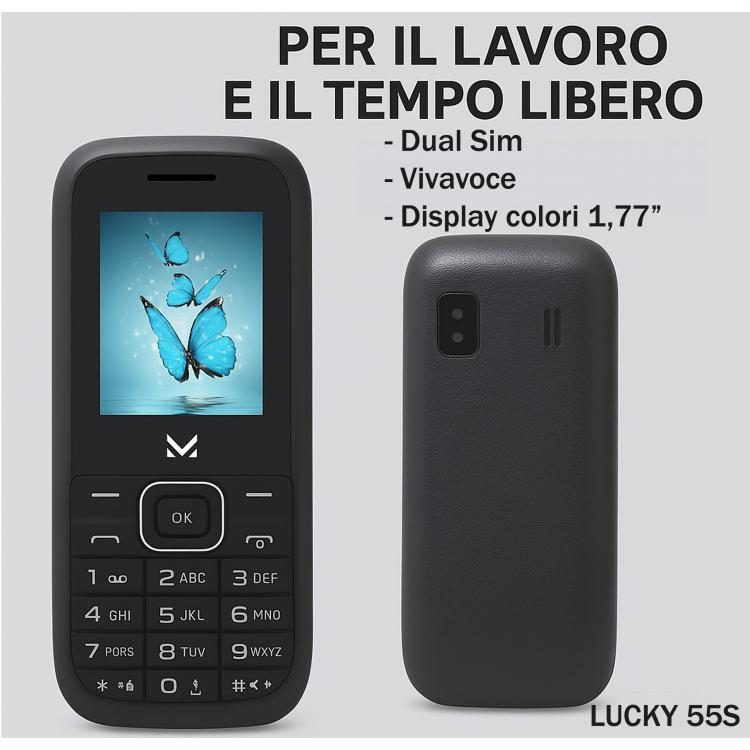 Il vivavoce integrato ti consente di parlare comodamente senza tenere il telefono in mano, ideale per conversazioni lunghe o per avere le mani libere mentre sei occupato. Il design compatto con display a colori da 1.77” rende il LUCKY 55S facile da usare e portare sempre con te.